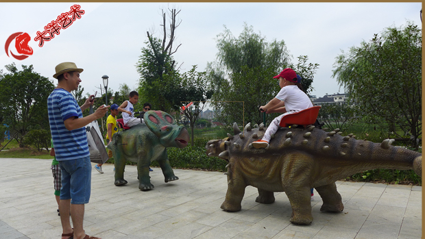 動 作:投幣后觀眾,張嘴叫聲、頭左右、四肢走動(方向盤控制)、尾左右擺動。背上可騎坐小孩隨龍走動娛樂